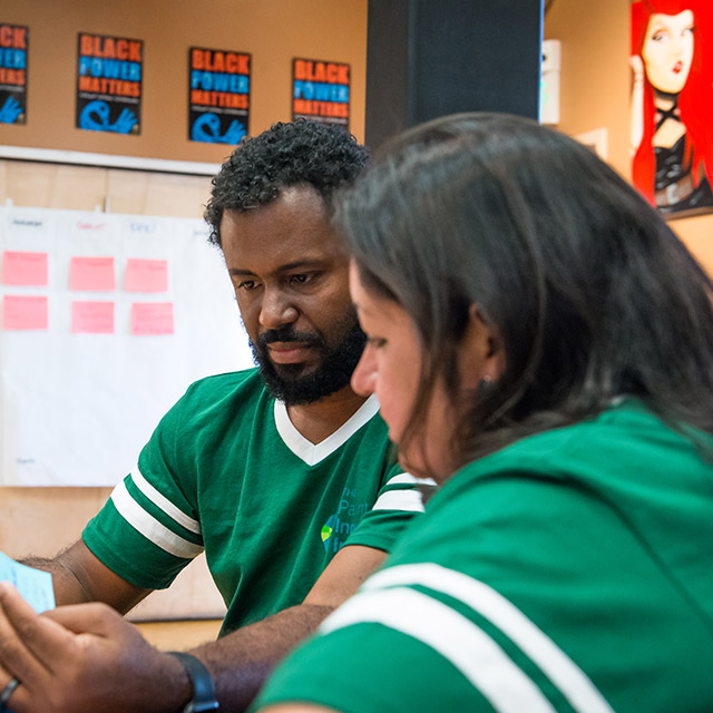 Knowing that solutions created with parents instead of for parents are much more likely to meet their needs, we launched the Parent Innovation Institute. We designed this year-long place-based initiative to bring organizations and the families they serve together, and test how co-creation and rapid-cycle learning could generate the following impacts:
